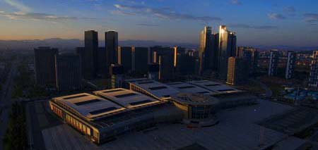 《詩經(jīng)?大雅?卷阿》:“鳳凰鳴矣,于彼高岡;梧桐生矣,于彼朝陽?!庇揽祰H會展中心整體建筑形如一只展翅高飛的“金鳳凰”,是浙中地區(qū)功能最完善、配套最齊全、設(shè)施最先進的專業(yè)展館之一,也是永康市最大單體建筑??傉嫉孛娣e17.6萬平方米,總建筑面積16.2萬平方米,廣場設(shè)施面積10萬平方米。國際會展中心設(shè)有千人多功能會議室,10大展廳共可提供3500個標(biāo)準(zhǔn)展位,以先進服務(wù)理念和國際化標(biāo)準(zhǔn)為國內(nèi)外展覽、會議,以及體育健身、發(fā)布會、宴會等各類型活動提供專業(yè)的服務(wù)體驗,被評為“中國十佳會展中心”“最具影響力會展場館”。